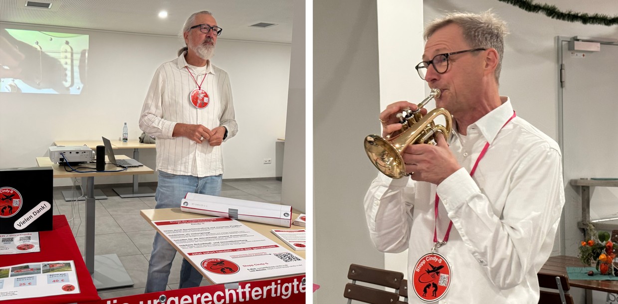 Den passenden Abschluss unserer Versammlung setzte unser Vereinsmitglied Jörg Görich: Mit seiner Trompete untermalte er unseren Protest mit dem Pipi Langstrumpf Song „Ich mach' mir die Welt, widdewidde wie sie mir gefällt ...“ – treffender hätte man es kaum ausdrücken können.