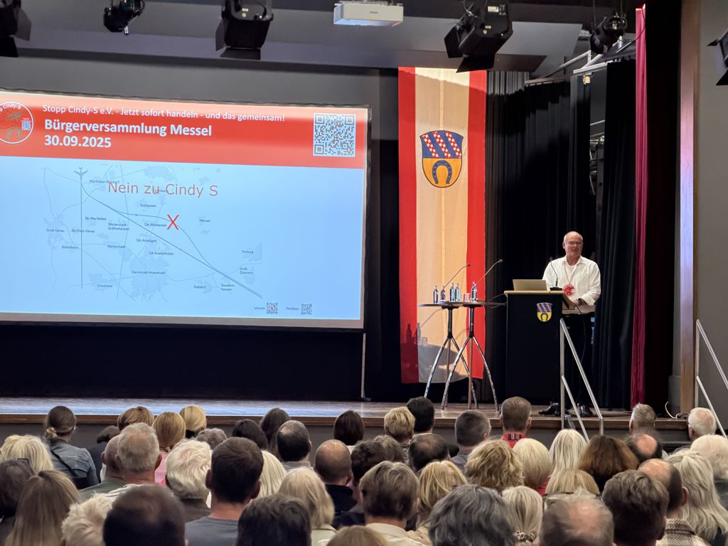Am 01.09.2025 fand im Bürgerhaus Erzhausen eine Bürgerversammlung zum Thema Cindy-S statt. Das Bürgerhaus war voll: Über 1.000 Besucherinnen und Besucher, so die offiziellen Angaben, nahmen daran teil.